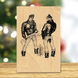 Get HARD this holiday season with our new Tom of Finland Wooden Postcards. Three different festive designs printed on birch wood — and completely mailable too! Order yours now for a most memorable gift giving season!